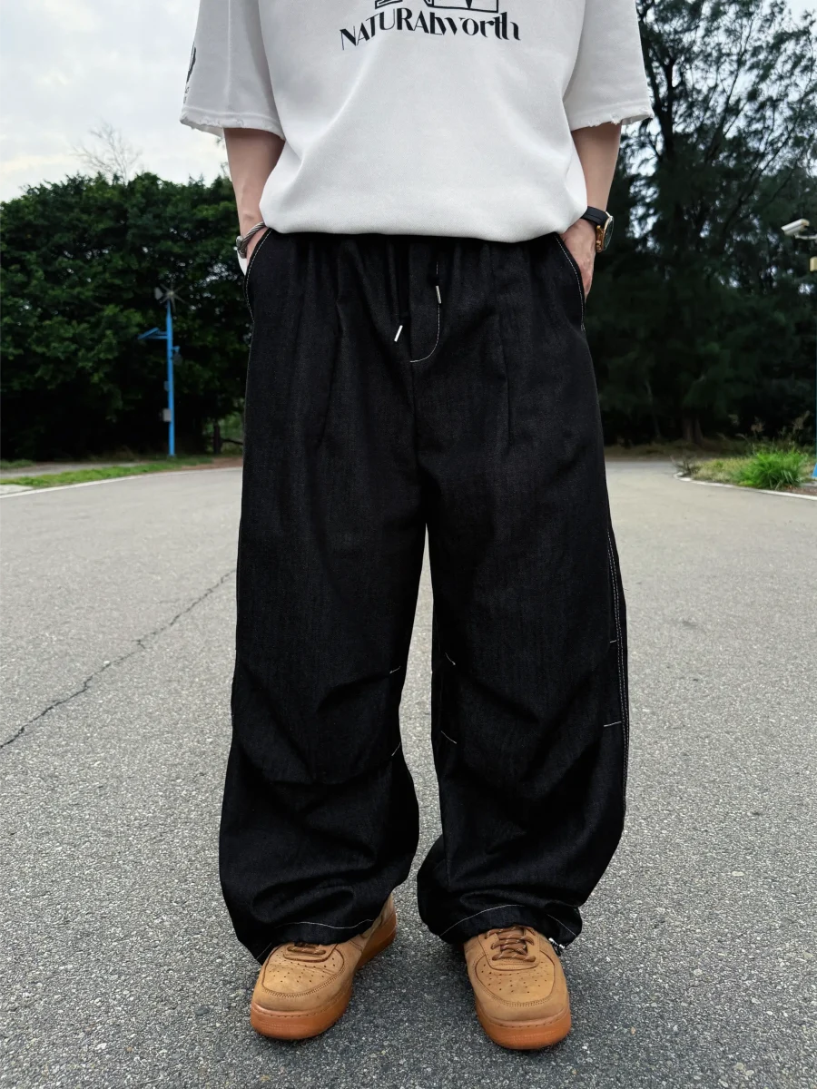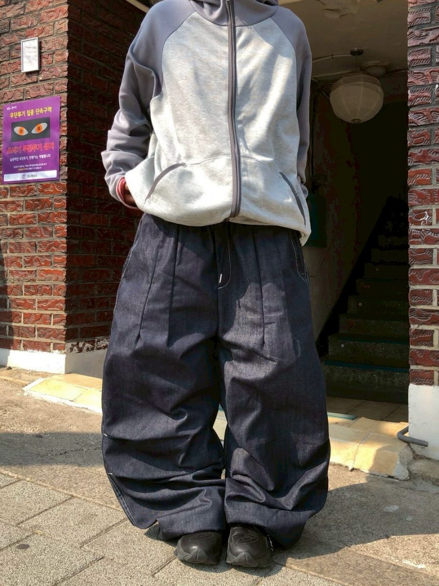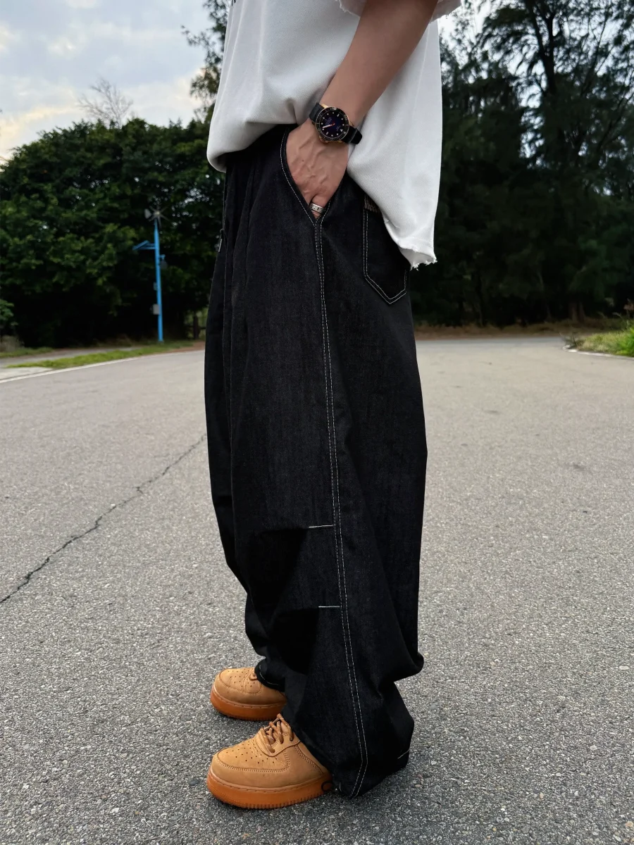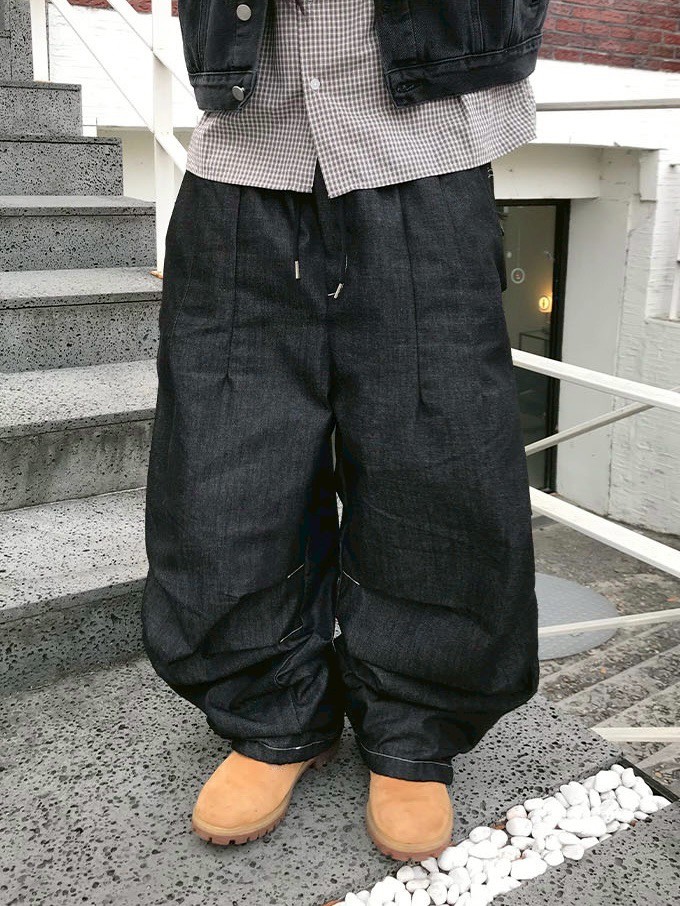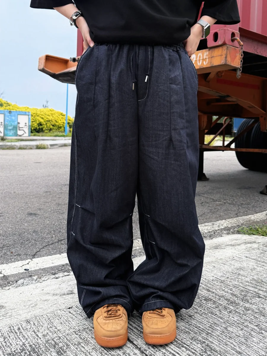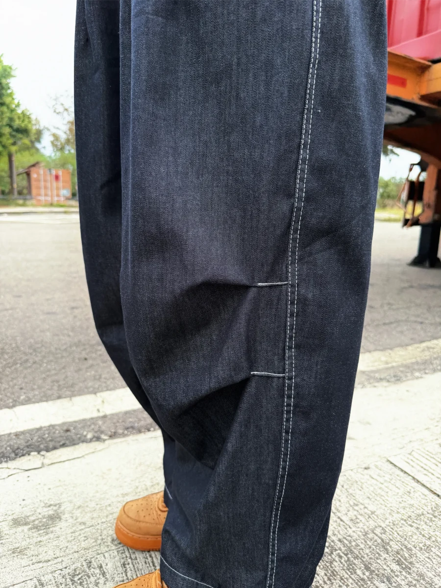後口袋格紋牛仔長褲