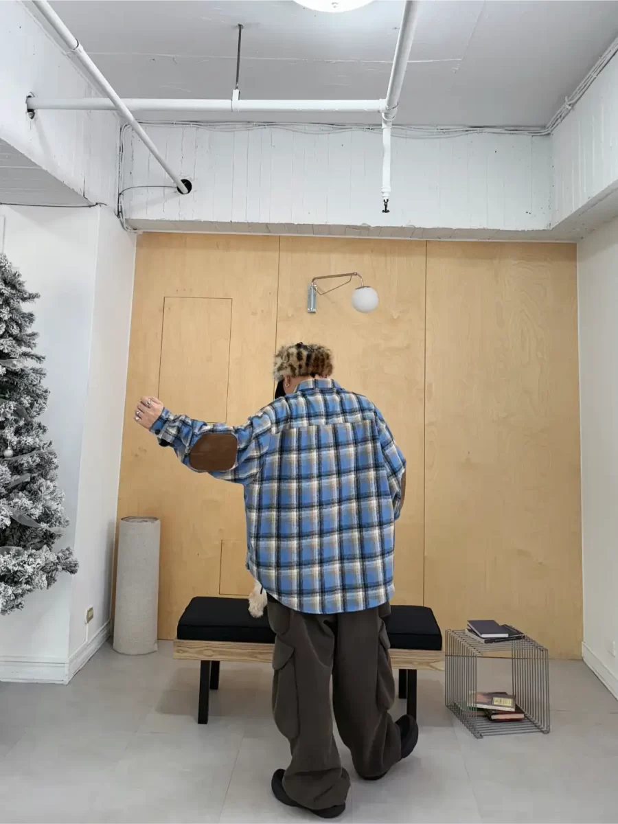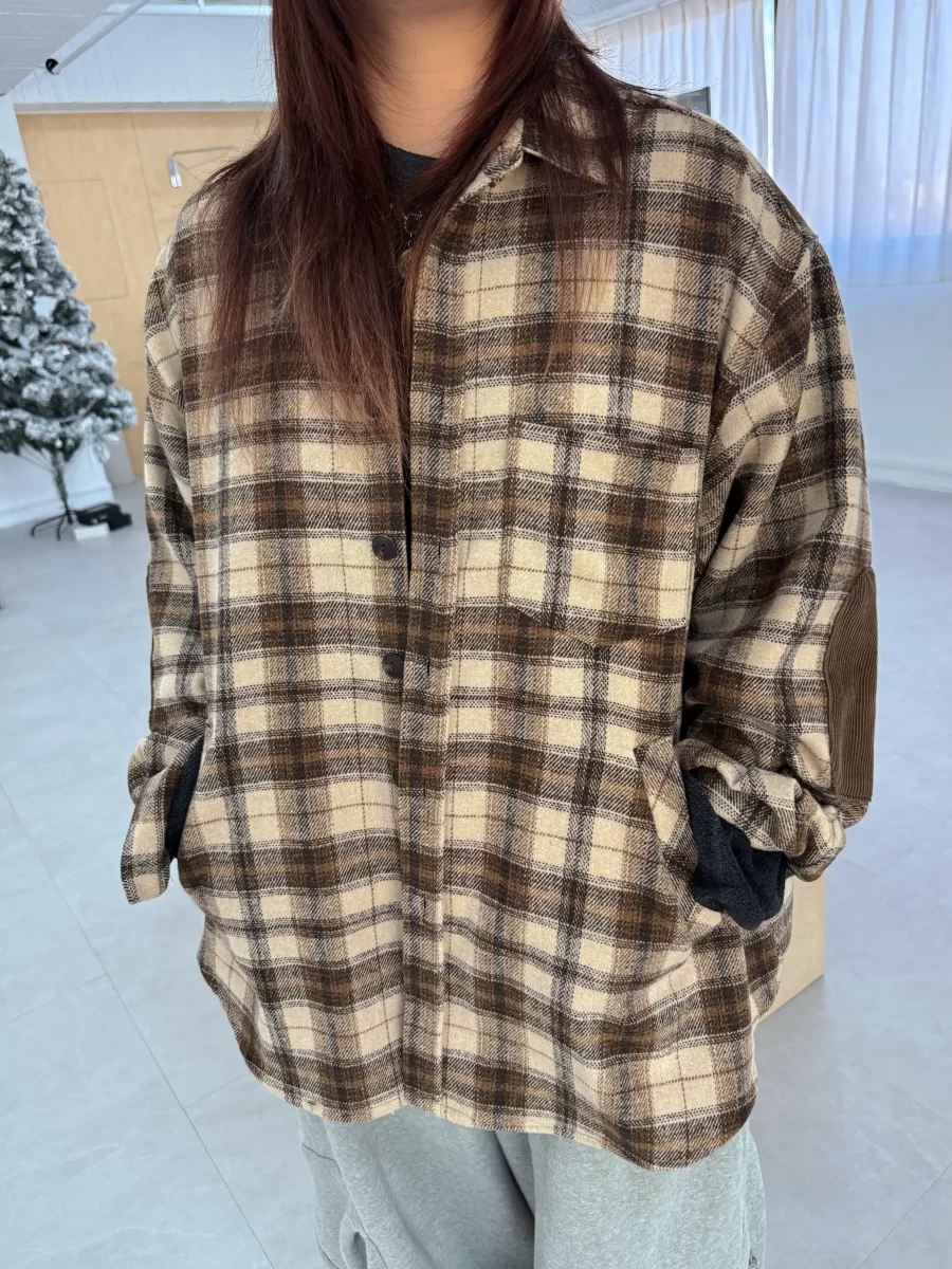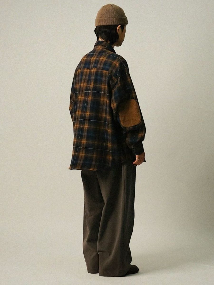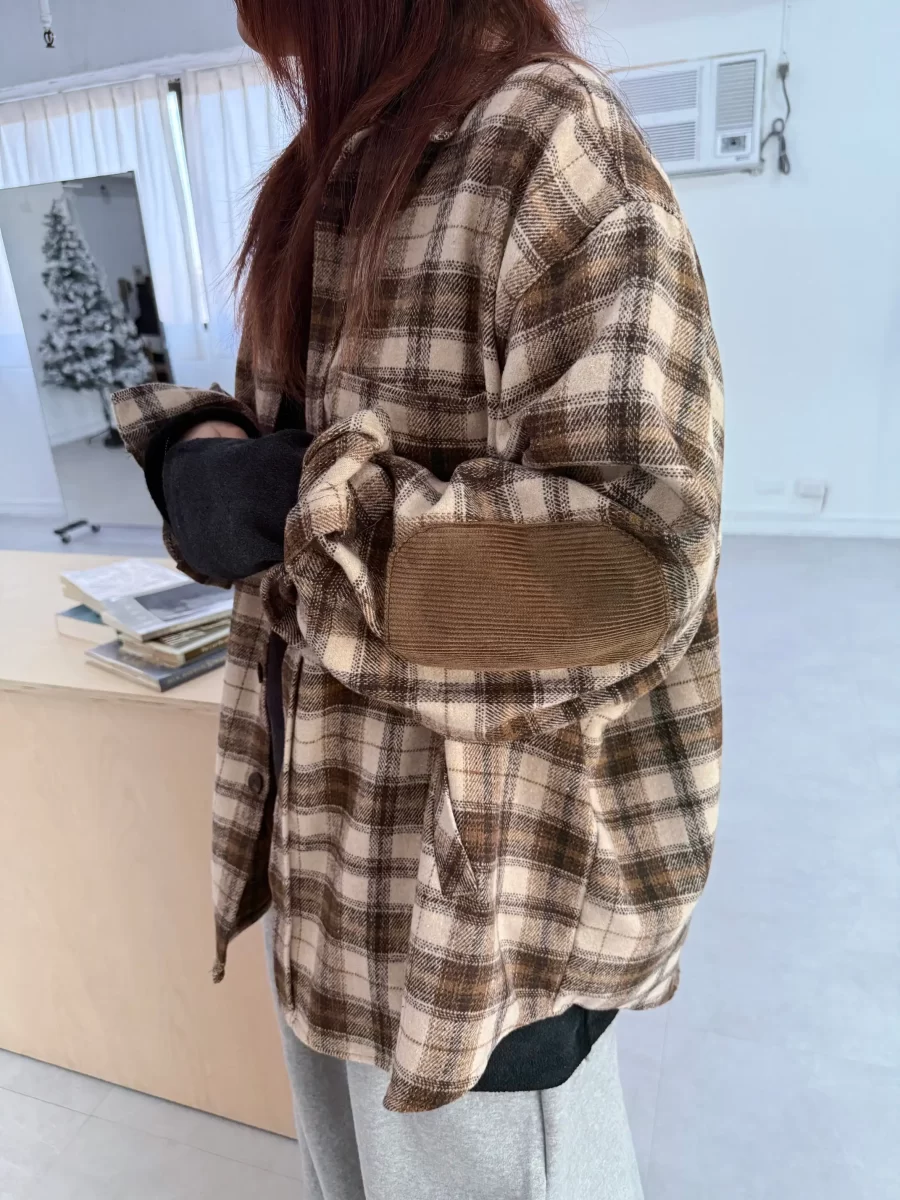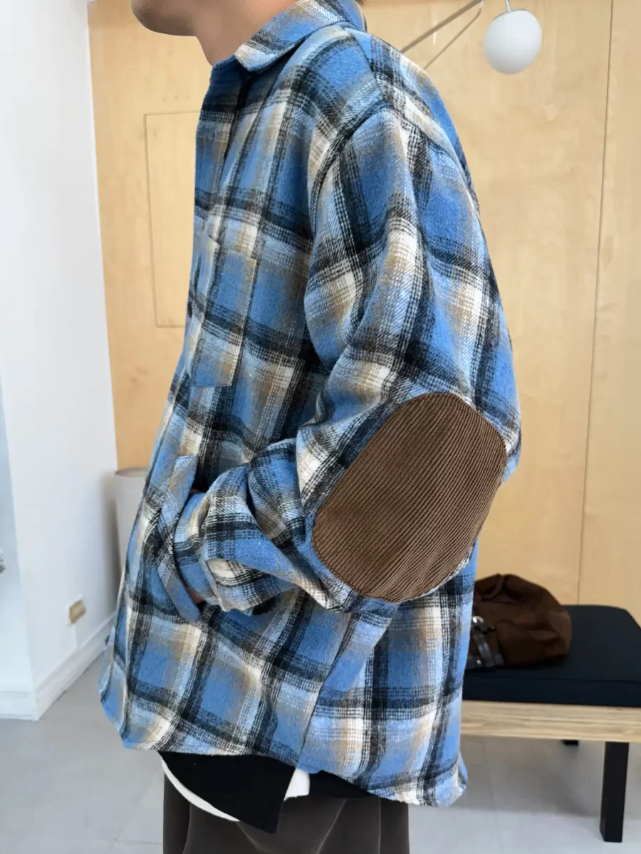 毛面格紋手肘撞色襯衫