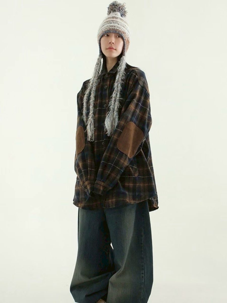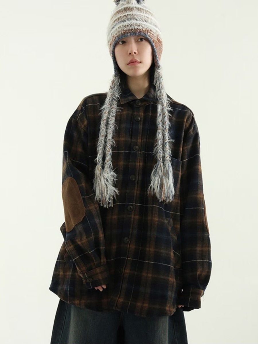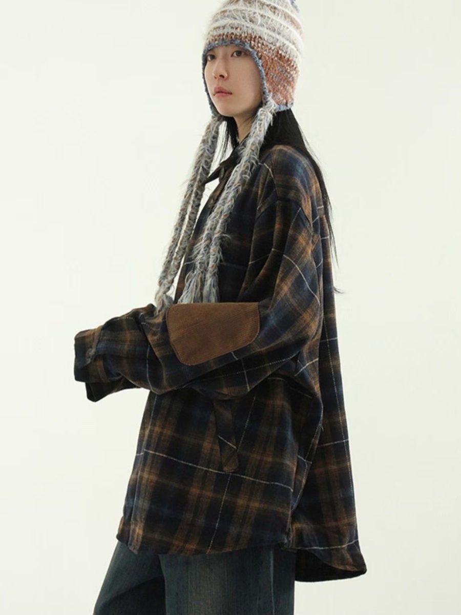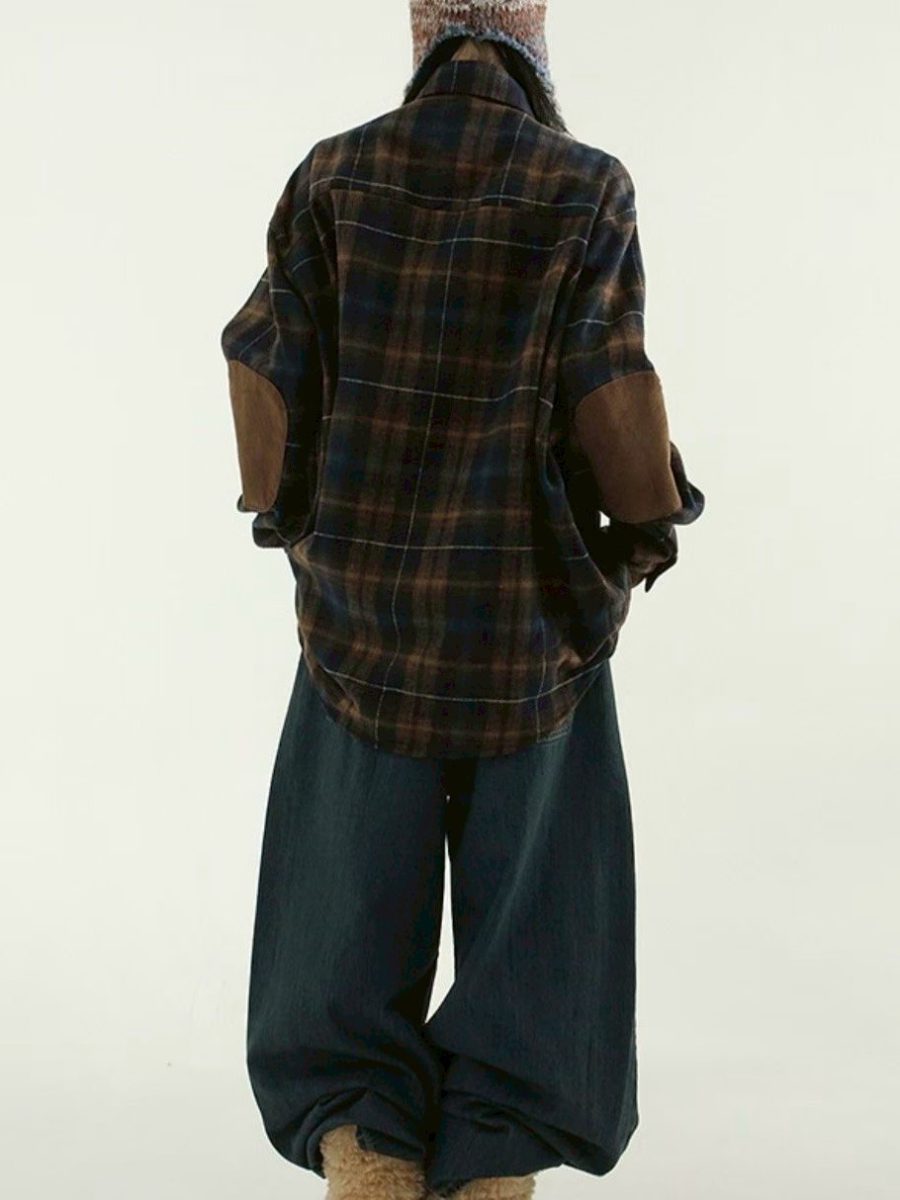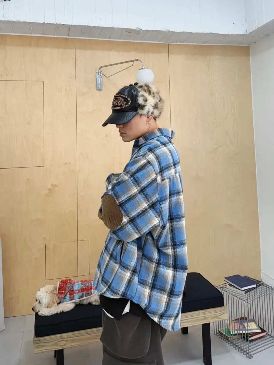 毛面格紋手肘撞色襯衫