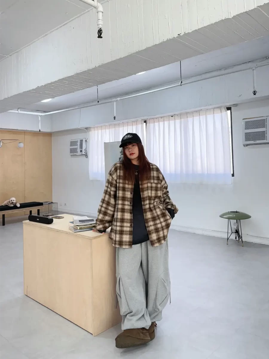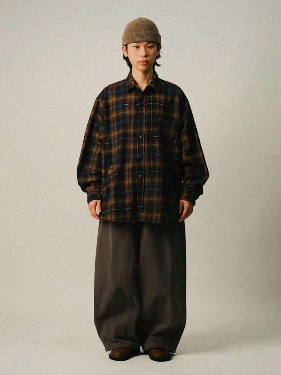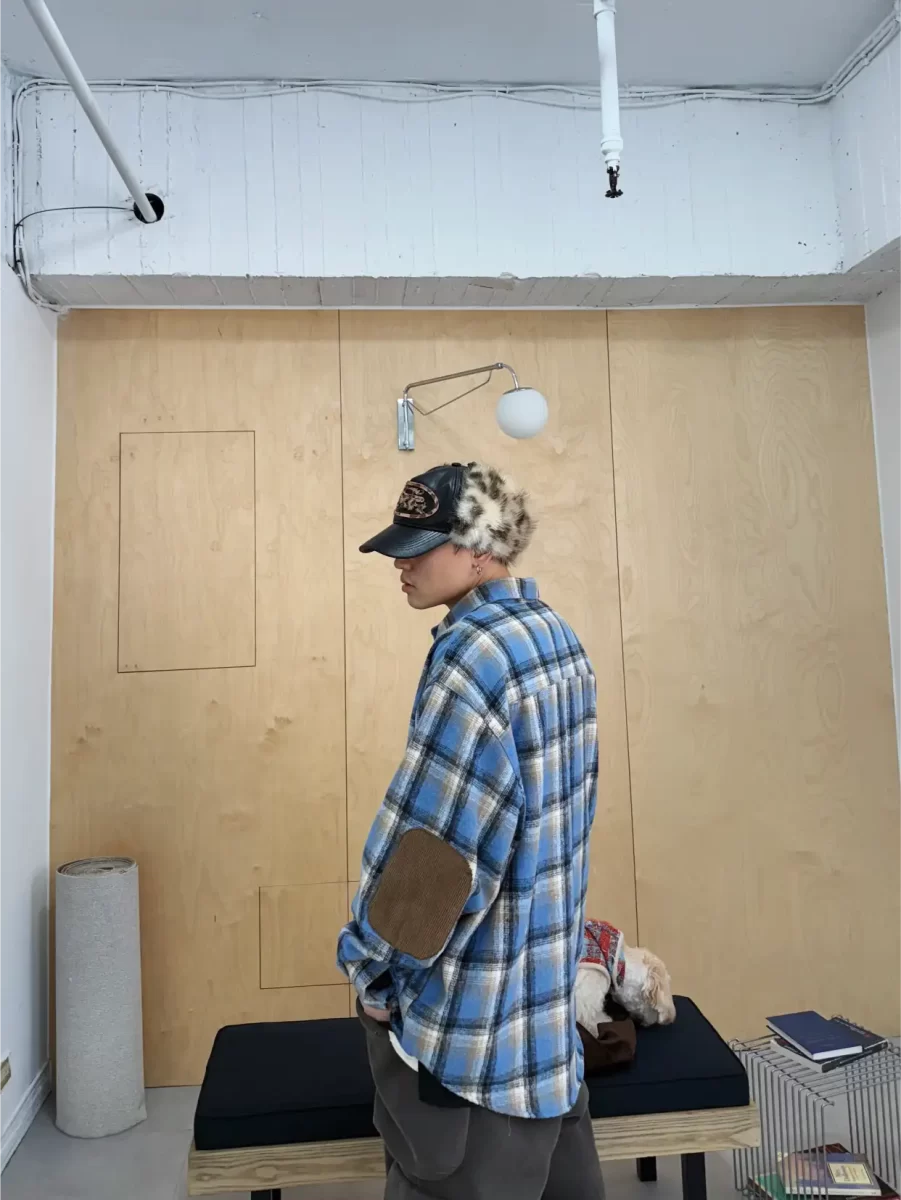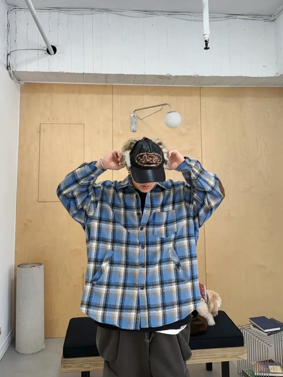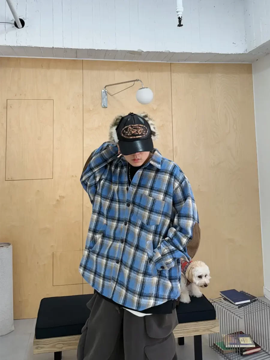 毛面格紋手肘撞色襯衫