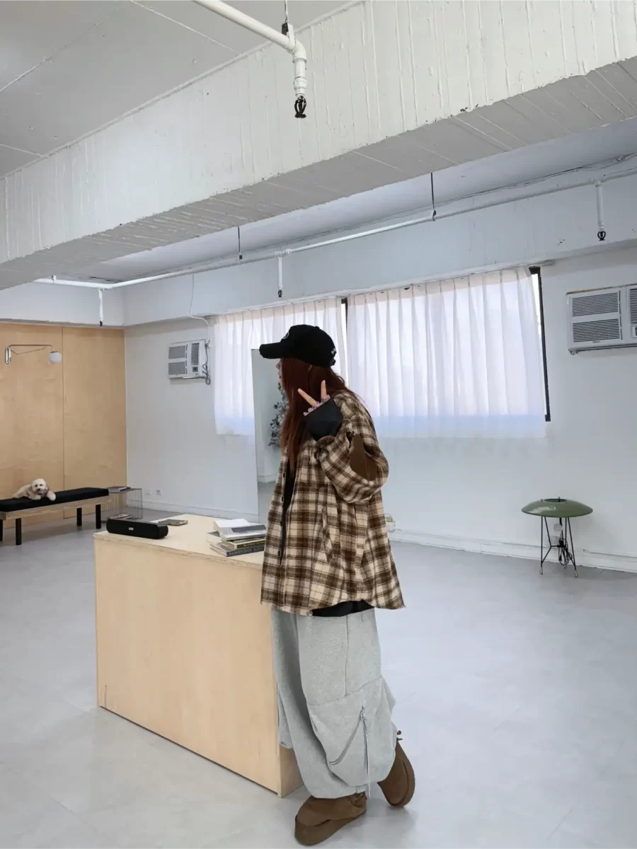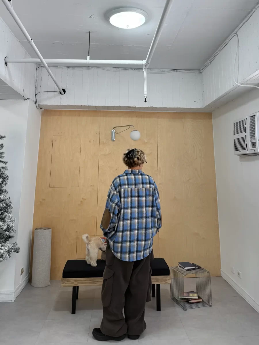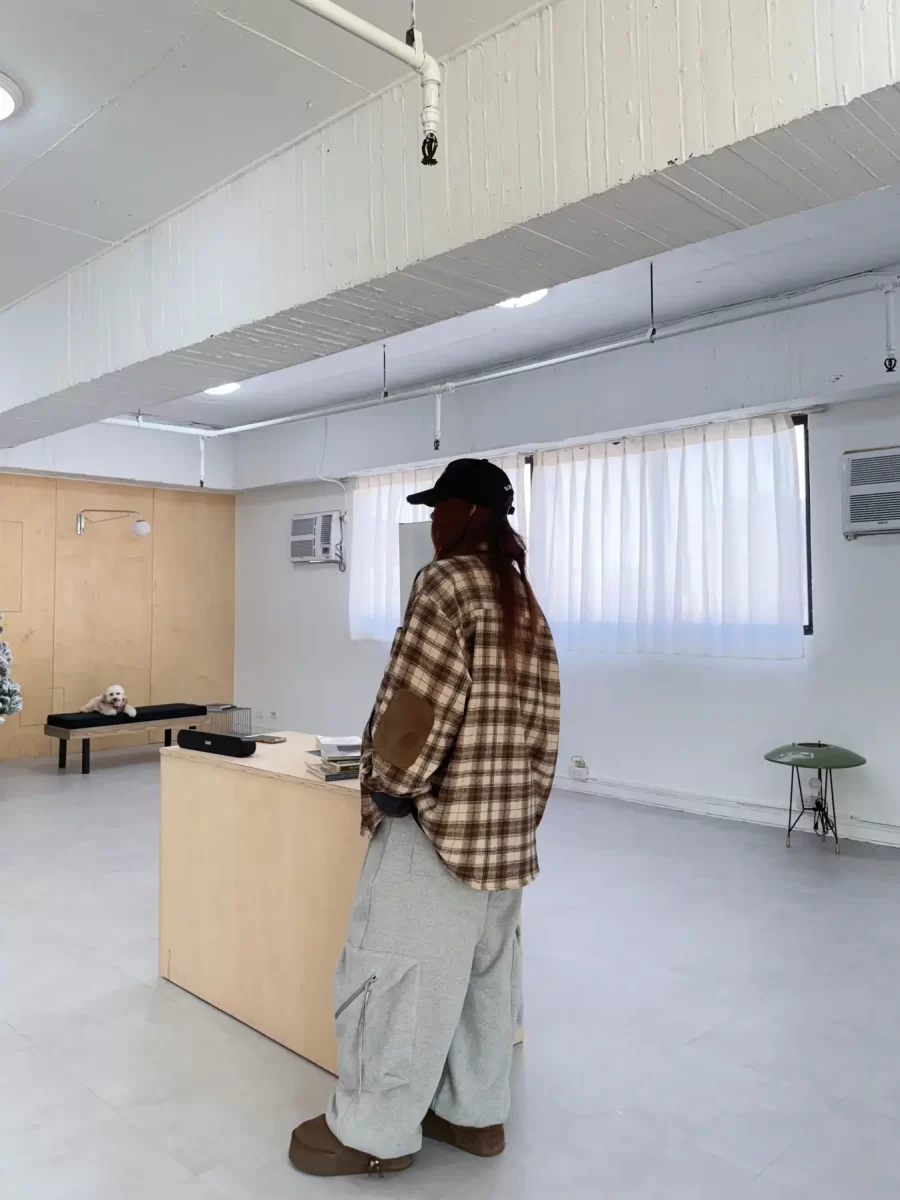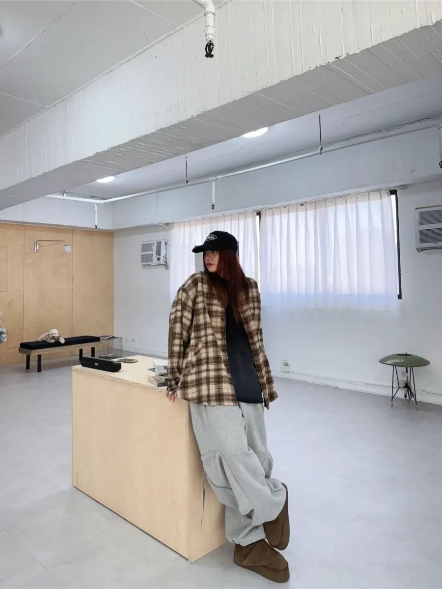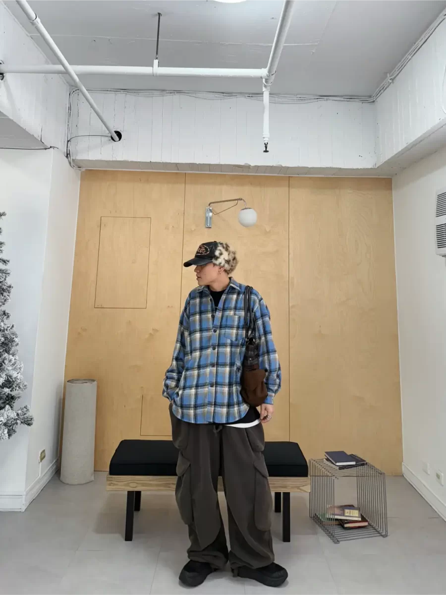 毛面格紋手肘撞色襯衫